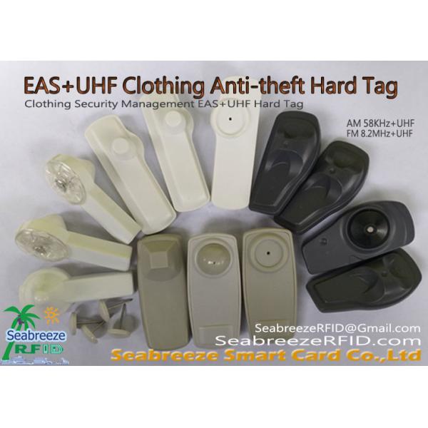 The EAS+UHF tag is not only trigger EAS alarm, but also sending back product information,used clothing and other products tracking management.It complaints with EPC C1G2 (ISO18000-6C) standard, operating frequency is 860-960MHz (It can be used worldwide). Each tag has a unique ID and stores user data. This product is designed for apparel retail and management.This product can be printed pattern, company LOGO.